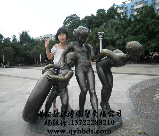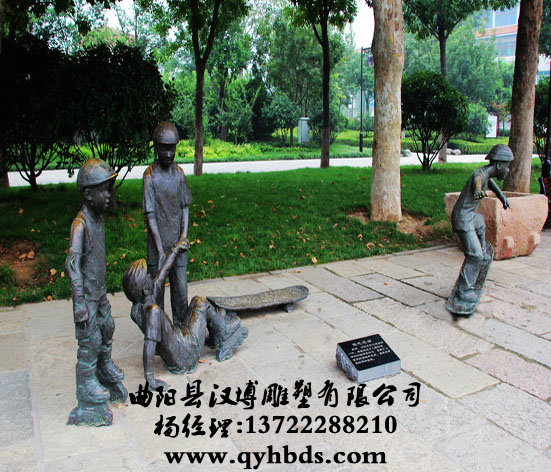 广场雕塑,小孩做游戏雕塑,玻璃钢情景雕塑-ds323