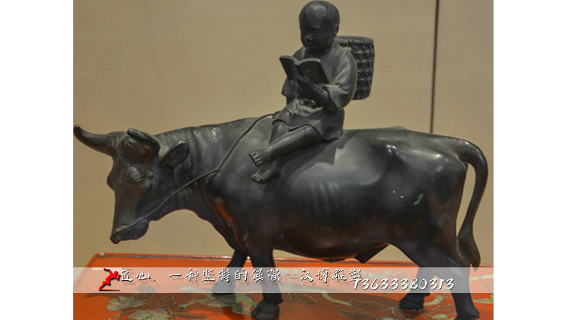 牧童骑牛雕塑,玻璃钢雕像,牧童骑牛铜雕
