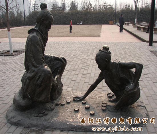 老人与孩子下棋雕塑
