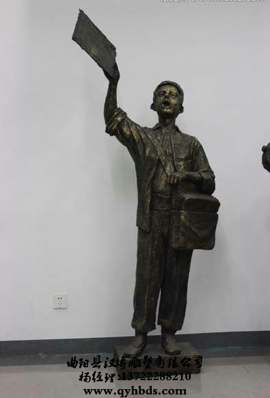 人物雕塑简介:人物雕塑是以古今中外的各种人物为造型的雕塑艺术,指用各种可塑材料或可雕、可刻的硬质材料创造出具有一定空间的可视、可触的艺术人物形象。曲阳县汉博雕塑有限公司是专业制作人物雕塑的厂家。