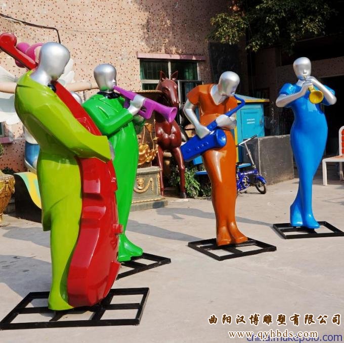 名称:玻璃钢彩绘广场音乐抽象人物雕塑