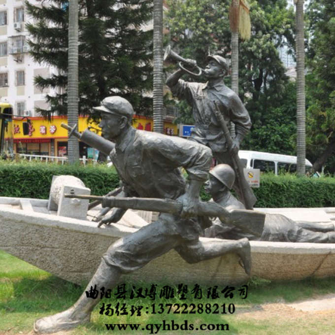 玻璃钢铸铜雕塑-城市文化雕塑-八路军战士雕塑户外