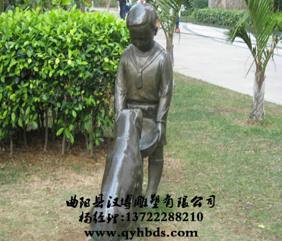 玻璃钢人物雕塑,小孩喂狗雕塑-ds393