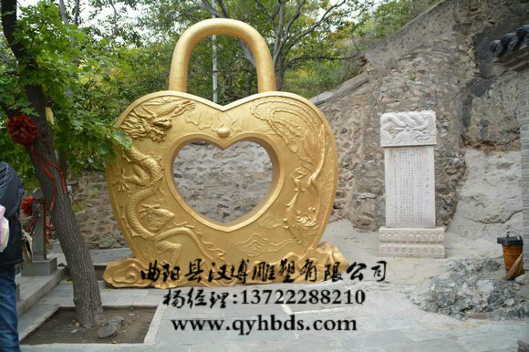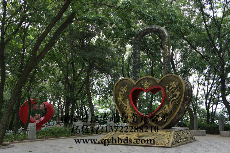 创意心形锁爱情主题雕塑_商业步行街玻璃钢仿铜雕塑