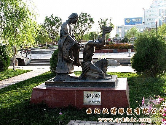 岳母刺字雕塑厂家-人物景观园林雕塑-玻璃钢仿铜雕塑价格