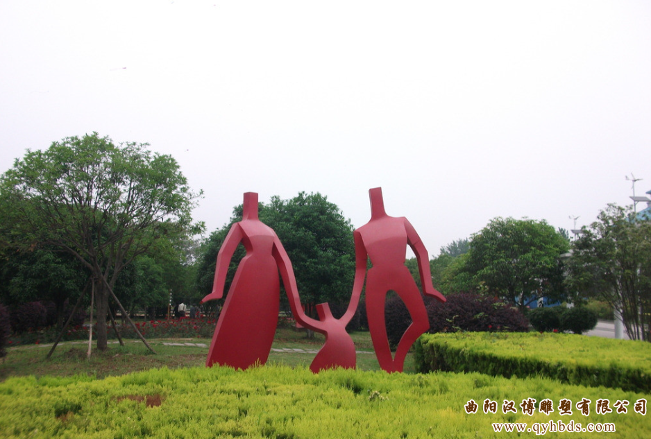 广场园林景观雕塑-一家三口雕塑价格-玻璃钢彩绘雕塑户外