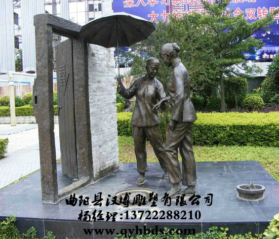 桥头风情雕塑,玻璃钢情景雕塑-ds406