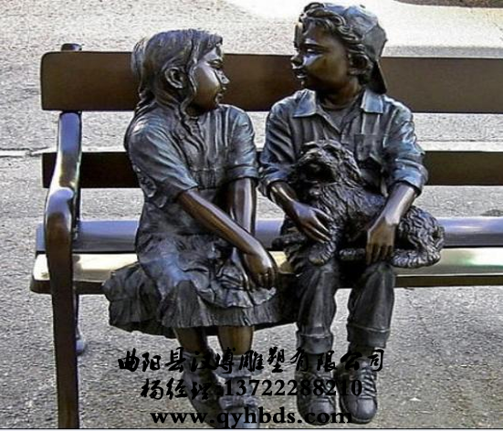 小孩雕塑,玻璃钢人物雕塑,长椅雕塑-ds138