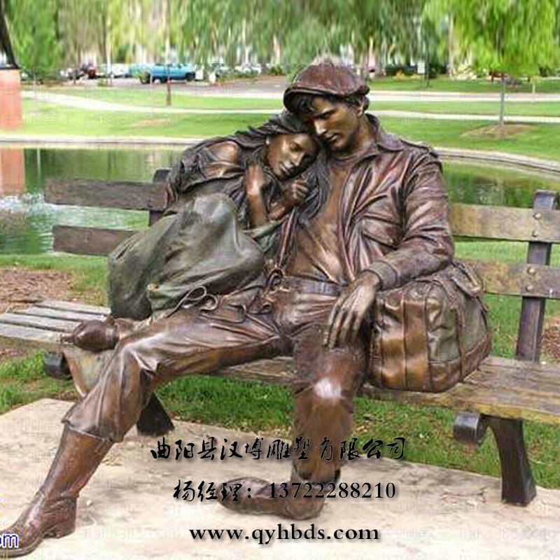 名称:玻璃钢雕塑 爱情主题雕塑 火车站情侣人物雕塑 户外园林景观雕塑