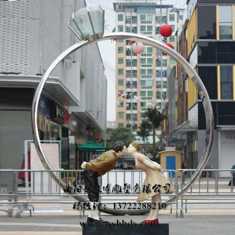 玻璃钢雕塑 爱情主题雕塑 情侣亲吻人物雕塑 户外广场