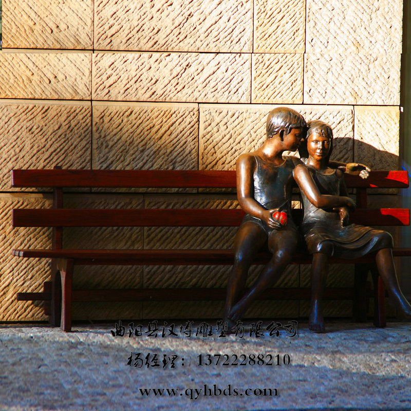 玻璃钢铸铜雕塑 爱情主题雕塑 小学生爱情座椅雕塑