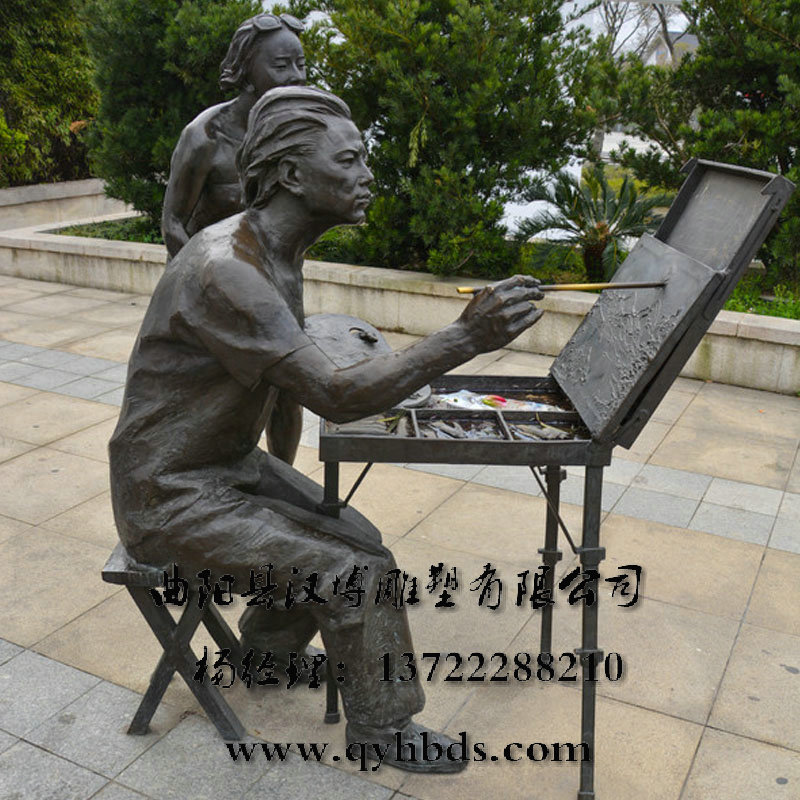玻璃钢仿铜人物雕塑 绘画画写生人物雕像 城市广场公园林