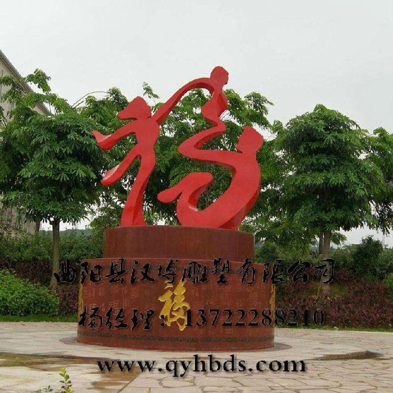 不锈钢抽象福字雕塑 一家三口红彩带模型和谐幸福之家雕塑