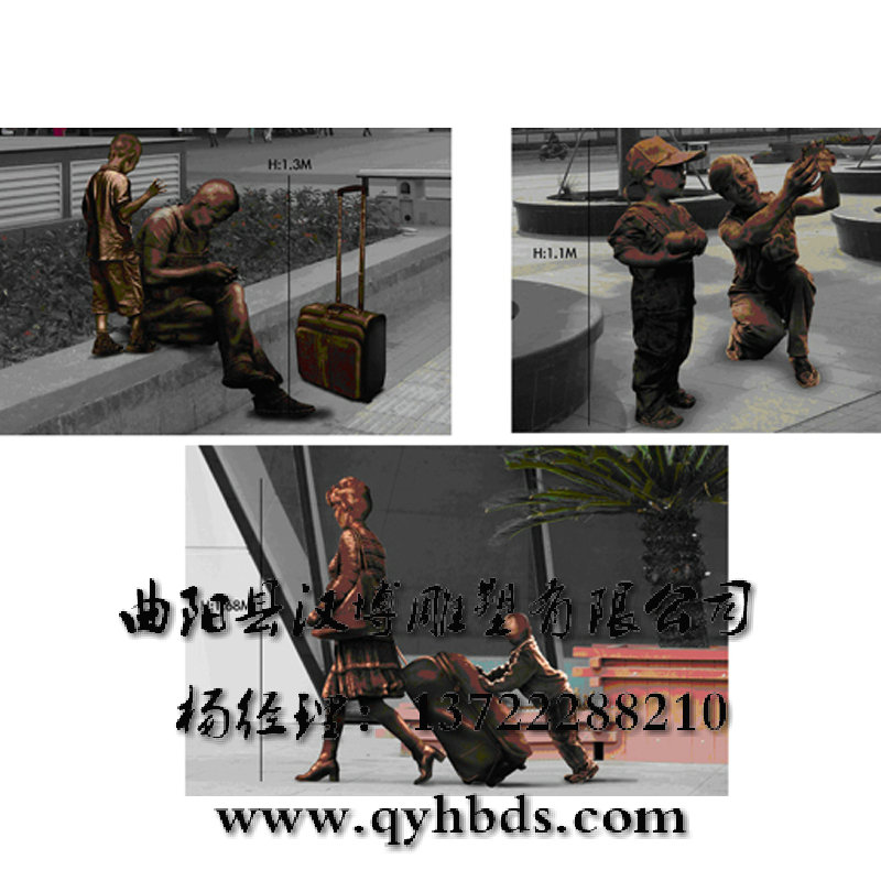 玻璃钢铸铜雕塑 少数民族人物雕塑 小孩玩耍雕塑 一家三