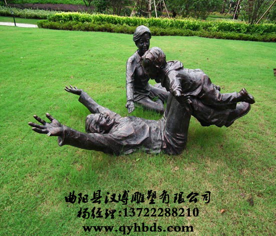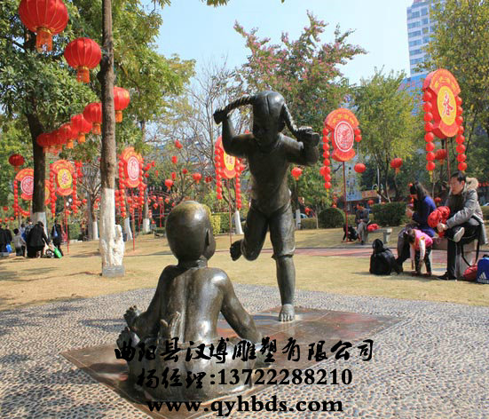 广场雕塑,小孩做游戏雕塑,玻璃钢情景雕塑-ds323