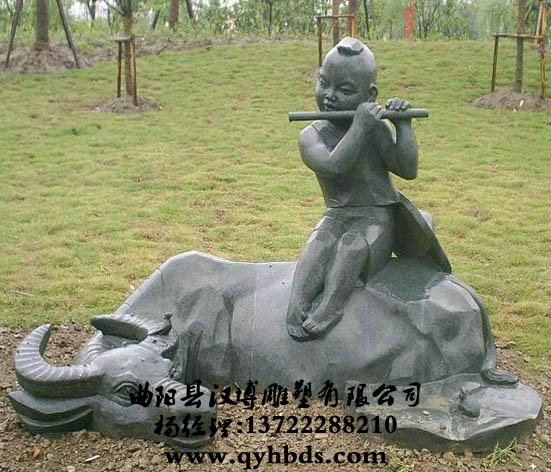 玻璃钢人物雕塑,牧童骑牛雕塑-ds114