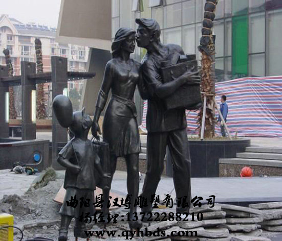 步行街雕塑,人物雕塑,一家三口雕塑-ds704