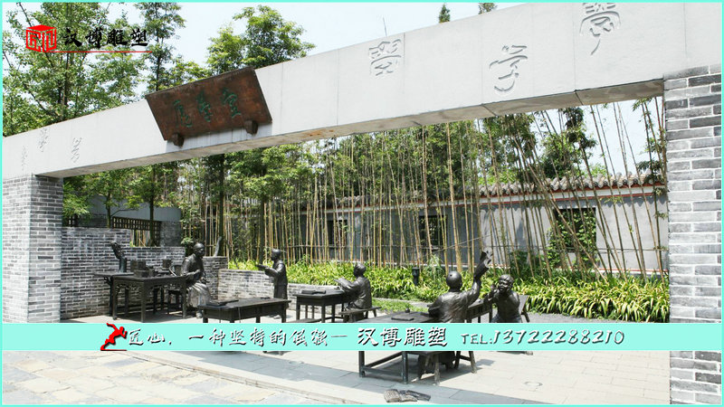 古学堂铜雕,夫子教学雕像,公园景观雕塑