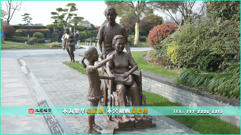 传统文化雕塑,一家三口塑像,铸铜人物铜雕