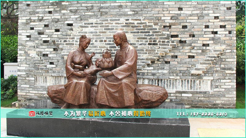 古代人物铜雕,一家人雕像,园林玻璃钢雕塑