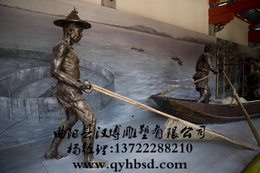 玻璃钢渔民人物闸壳雕塑,城市民俗小品商业街雕塑