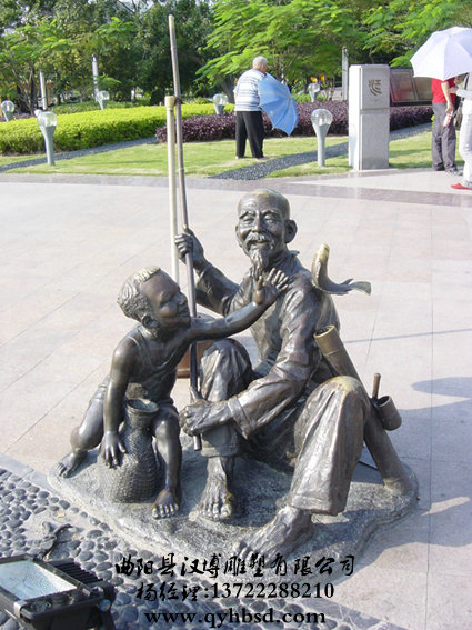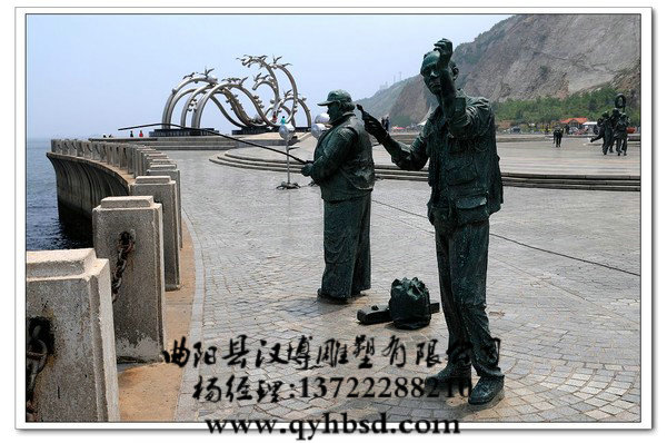 钓鱼爷孙俩人物雕塑,渔文化村庄小品雕塑