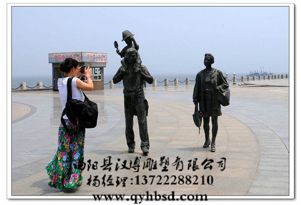 一家三口人物雕塑,玻璃钢商业街小品雕塑
