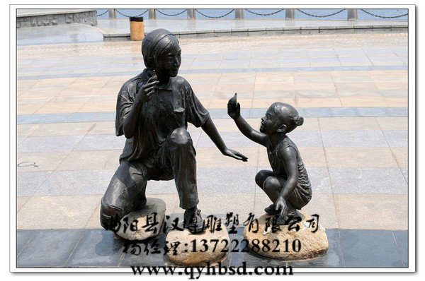 玻璃钢民俗小品,童趣小孩玩耍人物雕塑