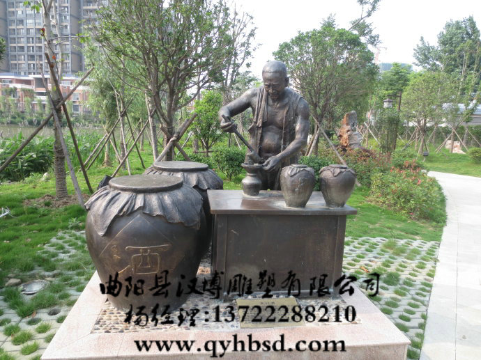 仿铜古代人物雕塑,打酒卖酒酒文化雕塑