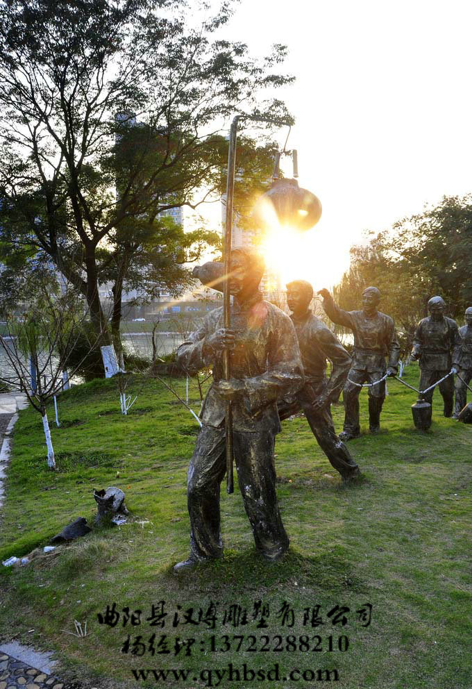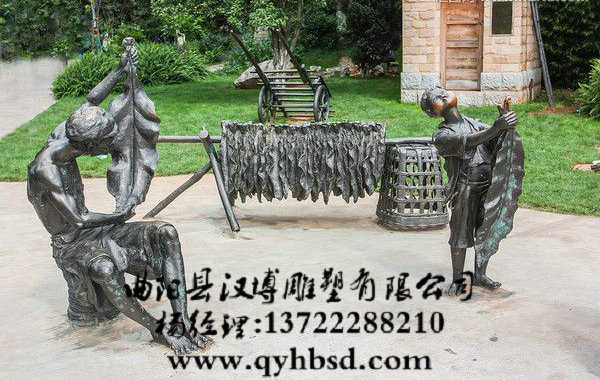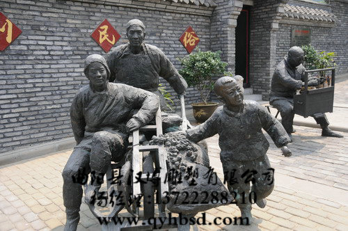 古代人物劳作雕塑,玻璃钢步行街景观雕塑