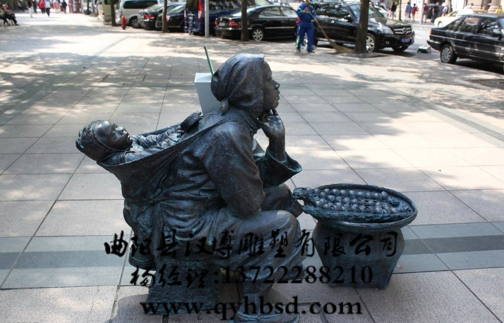 玻璃钢民俗小品,母子卖鸡蛋人物雕塑