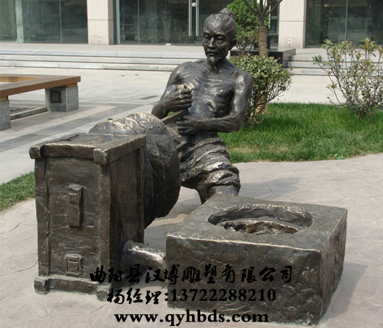 拉风箱人物雕塑,情景雕塑,玻璃钢小品雕塑-ds757