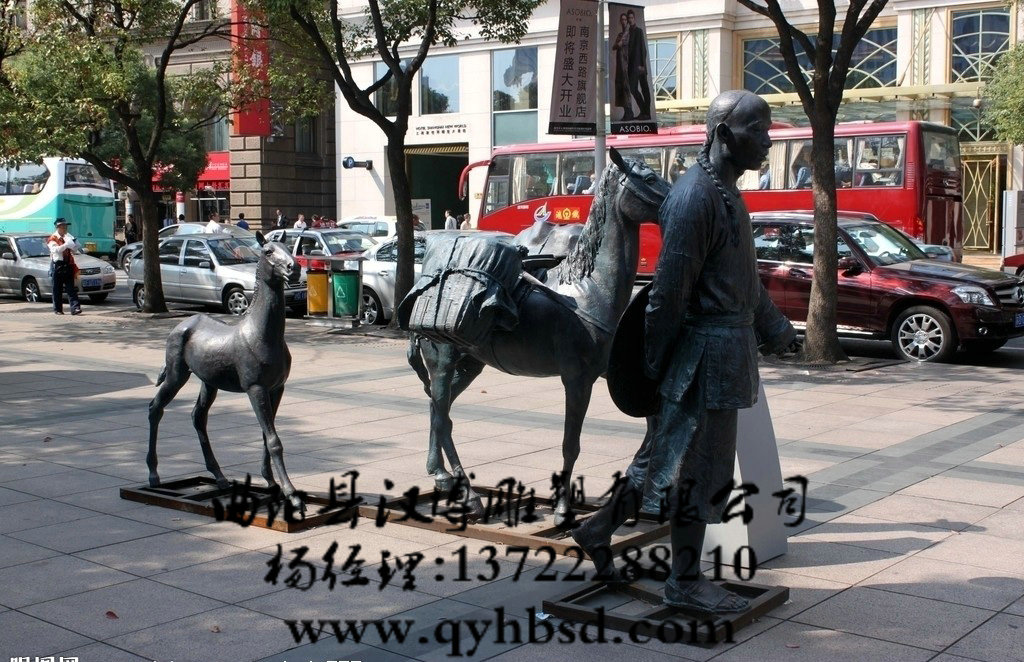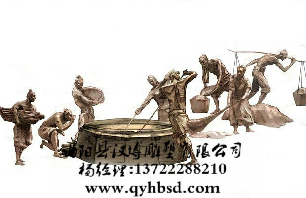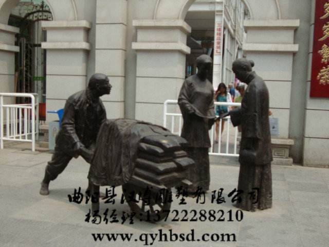 玻璃钢卖东西雕像,古代仿铜城市人物雕塑