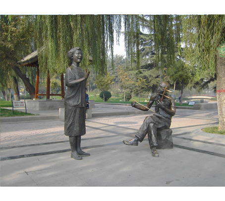 玻璃钢弹古筝人物,古代仿铜城市雕塑