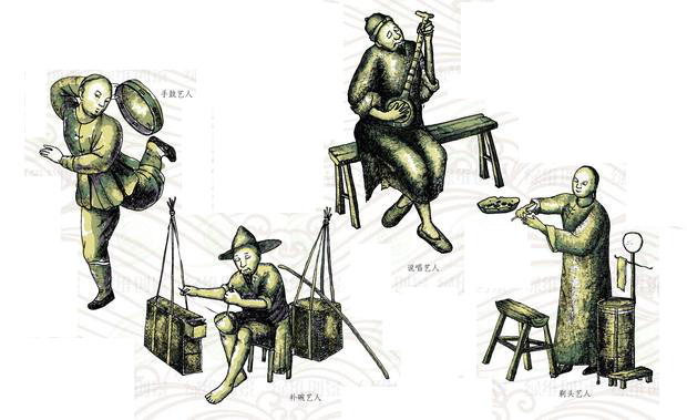 玻璃钢民俗文化卖货郎雕塑,摆地摊商贩商业街景观小品雕塑
