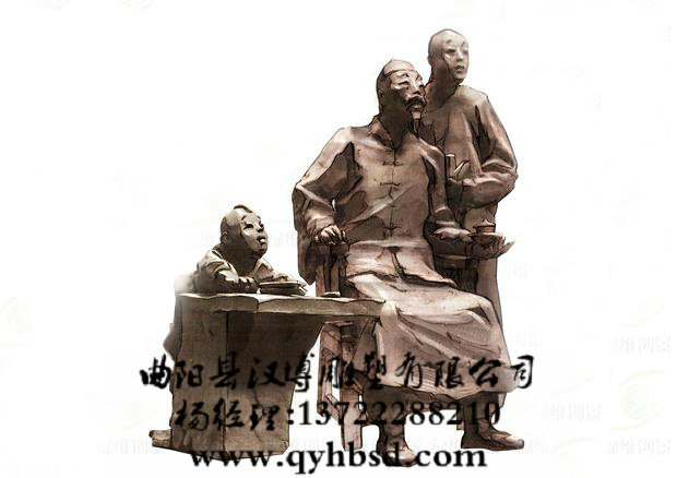 仿铜人物喝茶雕塑,玻璃钢茶文化雕塑
