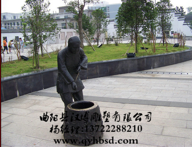 玻璃钢民风民俗打水雕塑,商业街景观小品雕塑
