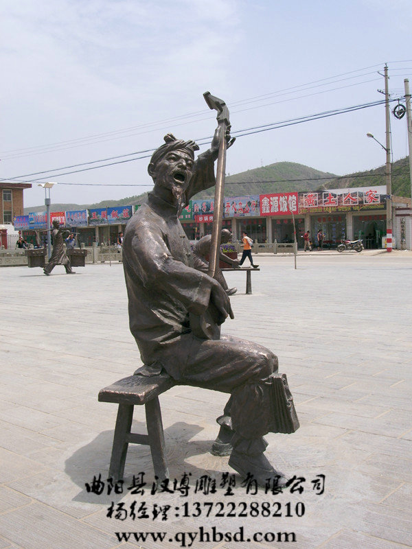 老北京民俗人物雕像,玻璃钢拉二胡人物