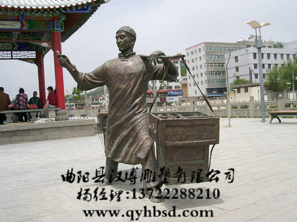 玻璃钢小品民俗人物,仿铜古代老北京人物