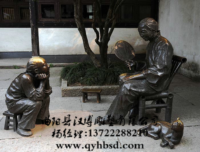 民间讲故事雕塑,农家院广场仿铜雕塑