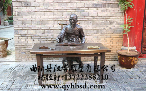 玻璃钢算账先生雕塑,仿铜古代小品民俗人物