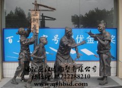 仿铜商业街变魔术雕塑,观看情景雕塑