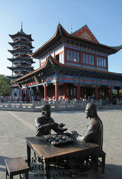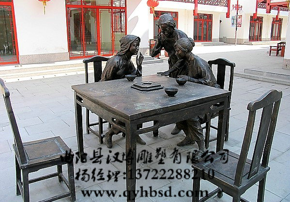 铸铜古代人物吃饭雕塑,开业迎宾街边小吃雕塑