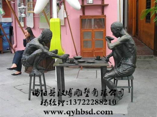 玻璃钢城市景观小品人物,喝酒仿铜广场雕塑