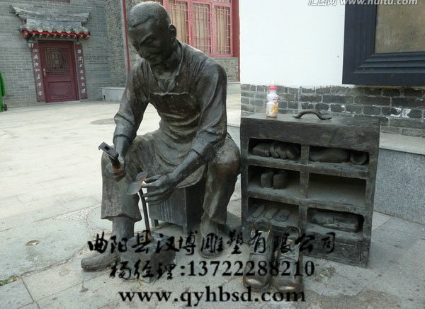 玻璃钢老汉修皮鞋,现代人物雕塑