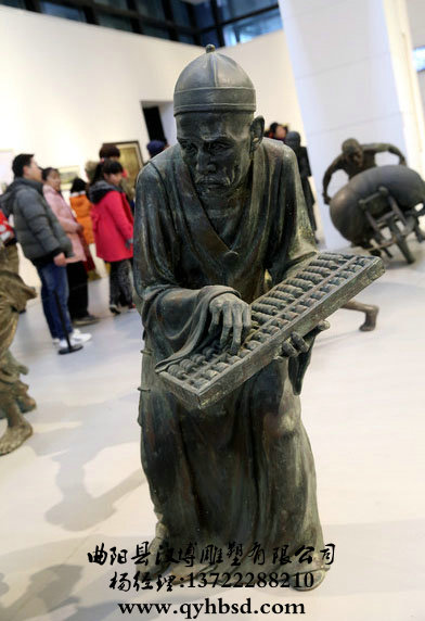 玻璃钢仿铜人物雕塑,街头景观算账先生小品民俗人物