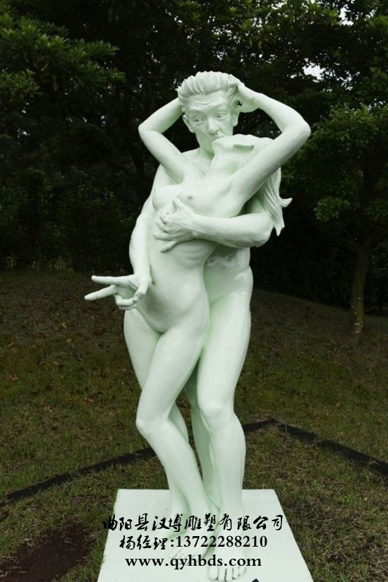 玻璃钢小品公园爱情主题_城市广场情侣接吻雕塑