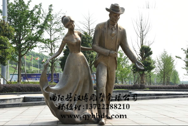 玻璃钢华尔兹情景雕塑_铸铜仿铜人物景观雕塑