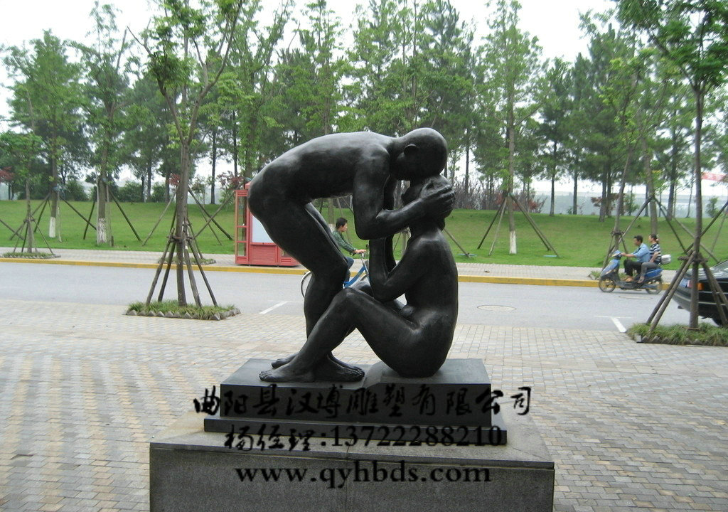 玻璃钢仿铜性爱主题人物雕塑_公园情侣户外景观雕塑