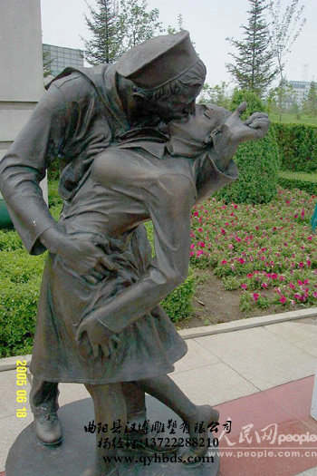 抗日战争时期情侣玻璃钢人物雕塑_铸铜爱情主题雕塑